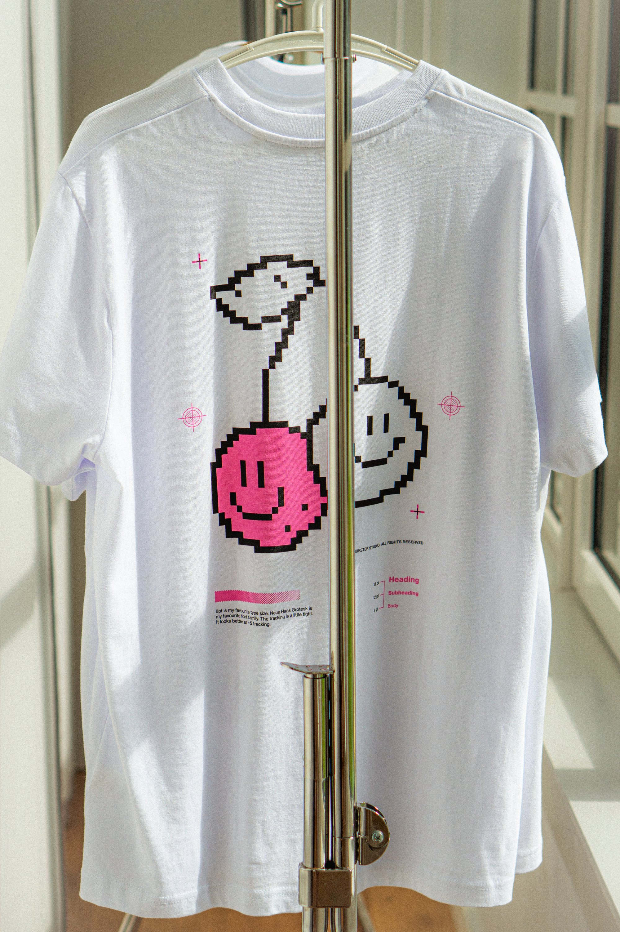 8pt is my favourite type size. Neue Haas Grotesk is my favourite font family. The tracking is a little tight. It looks better at +10 tracking.
